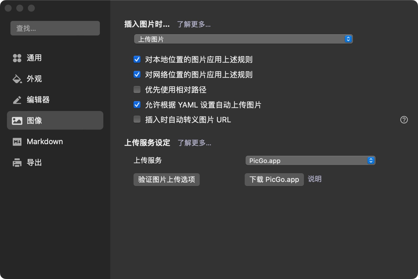 Typora,点击弹出框里下方的偏好设置,(macOS是这样,Win的自行搜索)设置成如下。