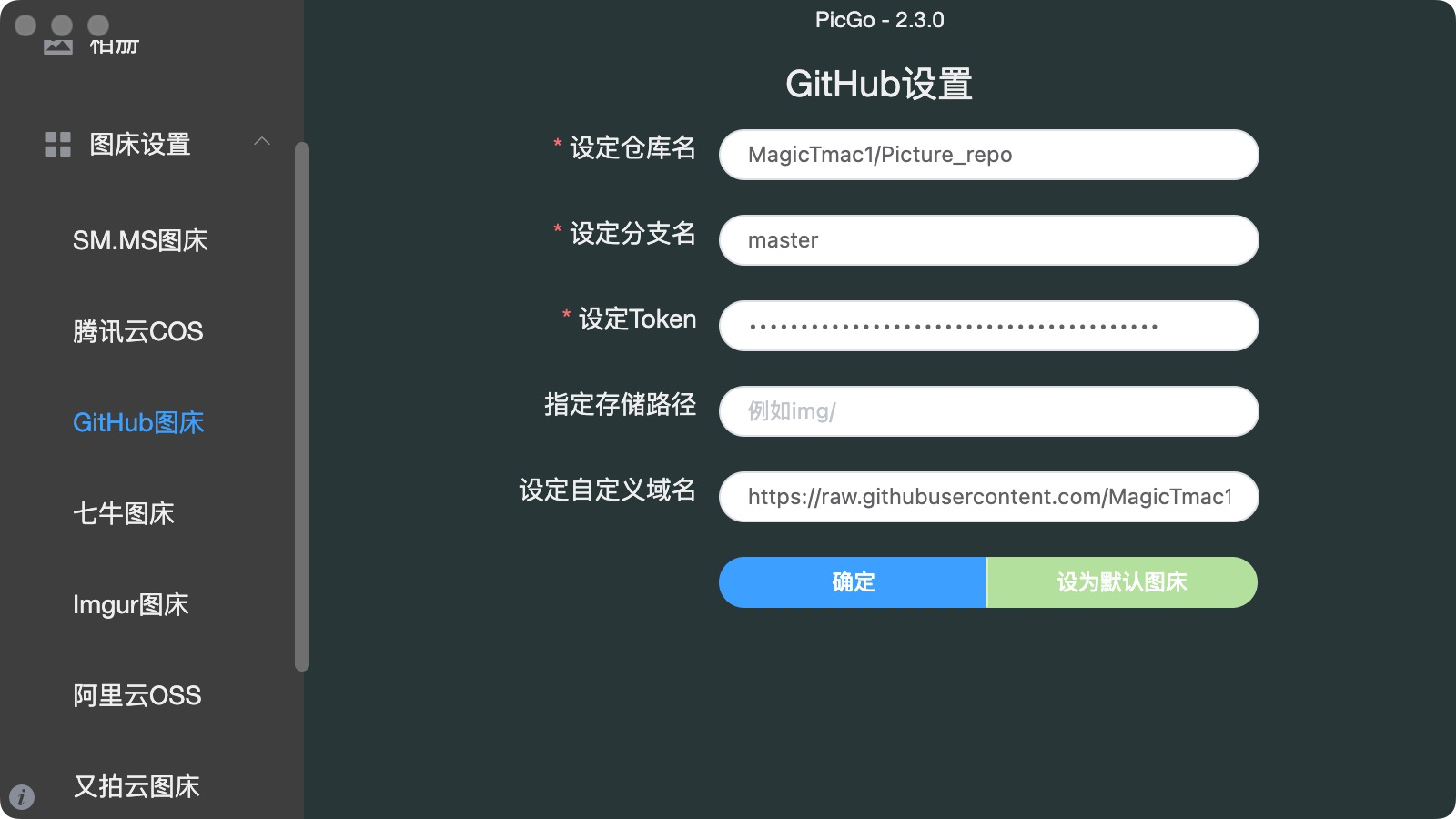 打开运行PicGo,左侧打开打开详细窗口,选择图床设置(Github图床)。